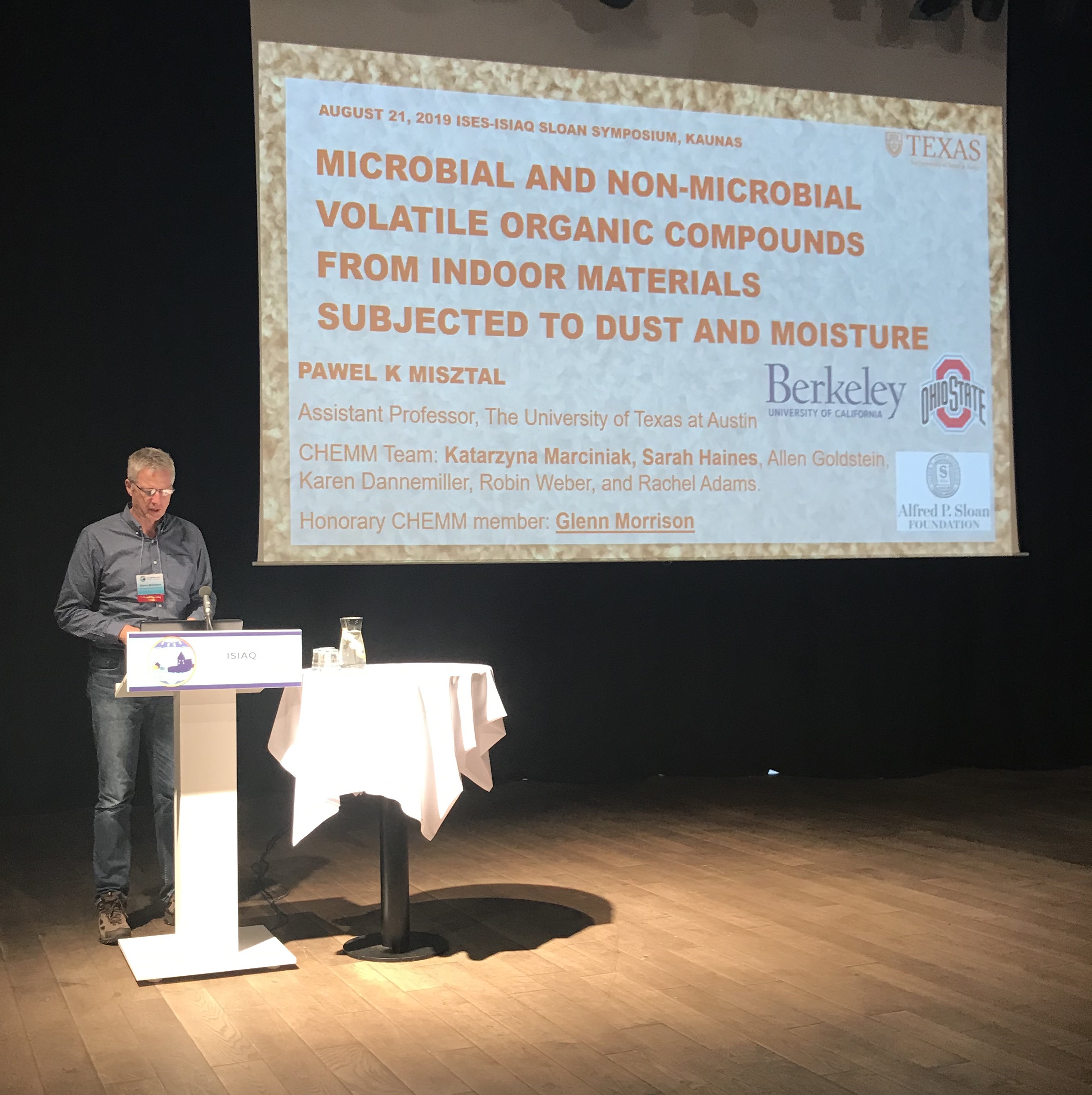 Last week, the International Societies of Exposure Science (ISES) and Indoor Air Quality and Climate (ISIAQ) had their joint meeting in Kaunas, Lithuania. The meeting featured a lot of great research on topics ranging from the thermal comfort of clothes to exposure to heavy metals from e-cigarettes and everything in between. While we can’t summarize the whole meeting here, we can give you a taste of what happened in the Sloan-sponsored symposium on “Integration of Biology and Chemistry for Indoor Environmental Quality.” Enjoy, and see you next year in Seoul!