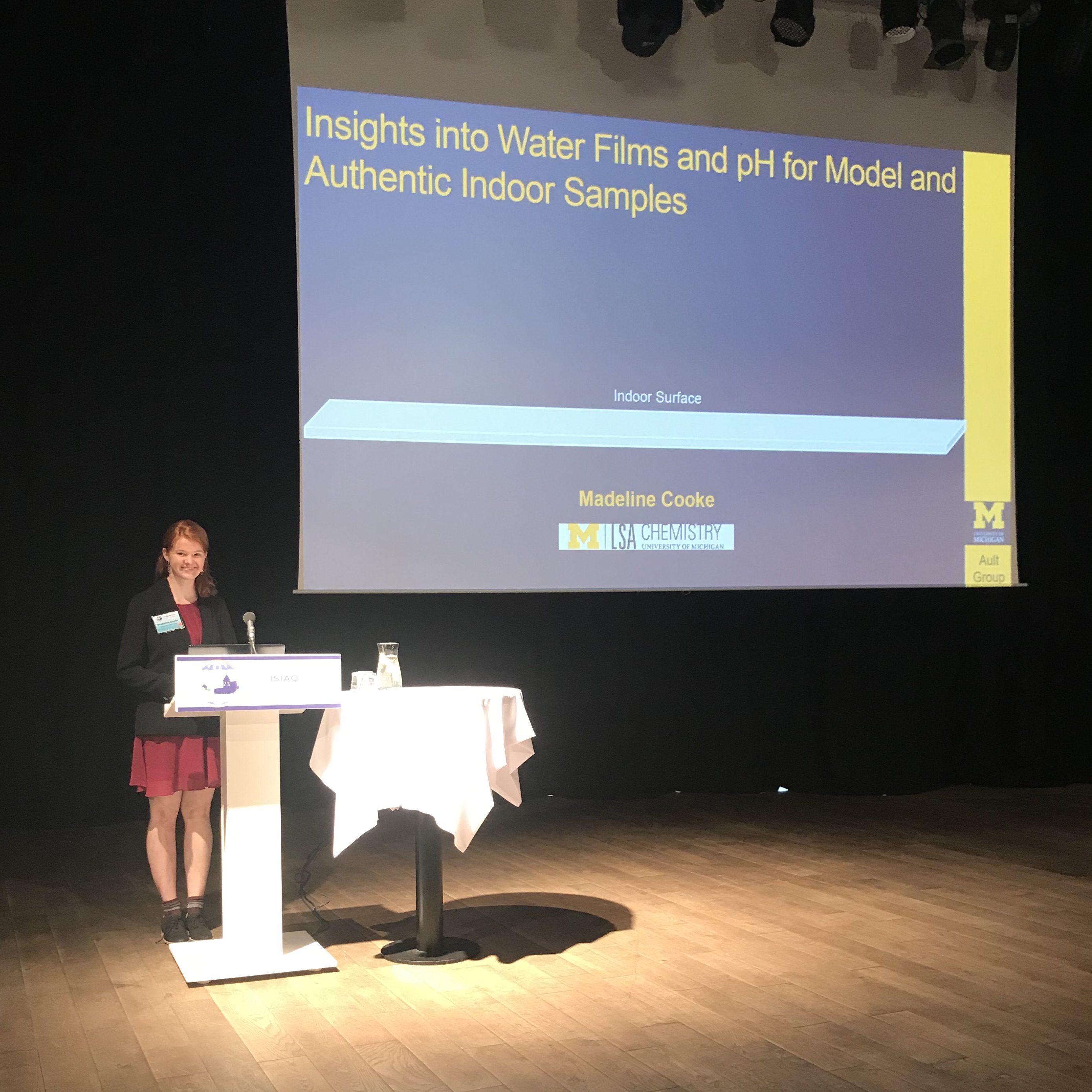 Taking a deeper dive into how surfaces impact indoor air chemistry, Madeline Cooke from the Ault group focuses on how the pH of the microscopic layer of water affects chemical reactions. Madeline uses a special technique called AFM-IR, which provides simultaneous physical and chemical information about surface films; combined with visible light, you get a spatial resolution of 1 micron! This resolution is important for differentiating surface types because even things that look relatively similar with the naked eye can be very different at the micro- and nano-scales. These pH gradients change protonation of the species dissolved in the films of water on the surfaces, which in turn changes volatility. Looking at pH at such a tiny scale could turn out to be really important for things like James’ study of bleach.