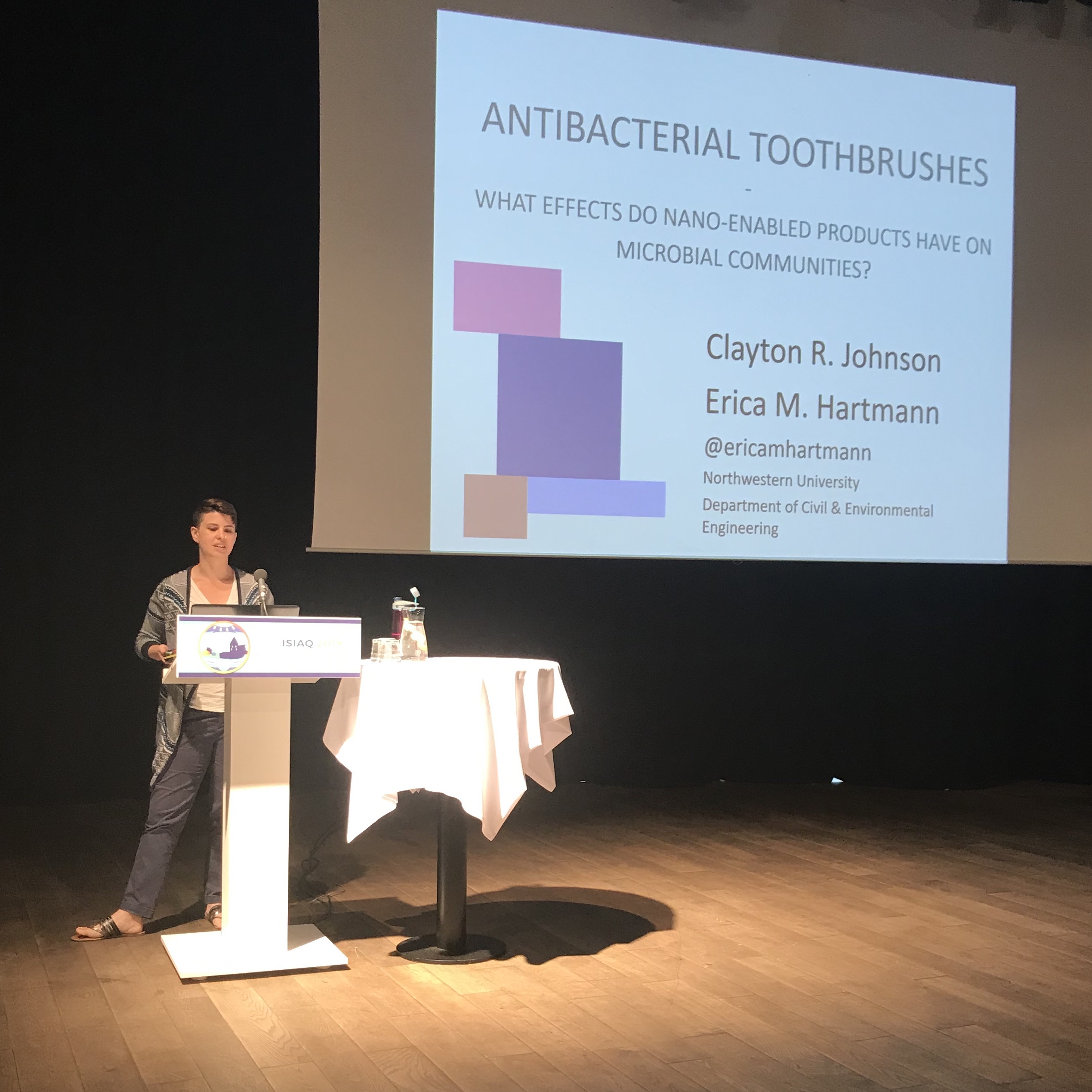 While most people might not care about a little water on an indoor surface, none of us are too happy to have a layer of grime. The presence of microbes on surfaces is a little more controversial. Erica Hartmann shared her research on the use of nanosilver to kill microbes on a somewhat unusual indoor surface – toothbrush bristles. Her group found that, while nanosilver does a pretty good job of offing the microbes in question, it also tends to come off of the toothbrush, which isn’t ideal. Much like using bleach to clean microbes on surfaces, there are some consequences to keep in mind when using antimicrobials like nanosilver in consumer products.